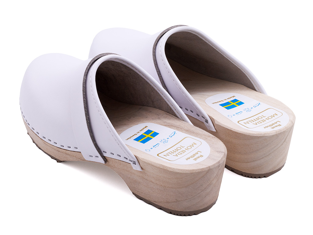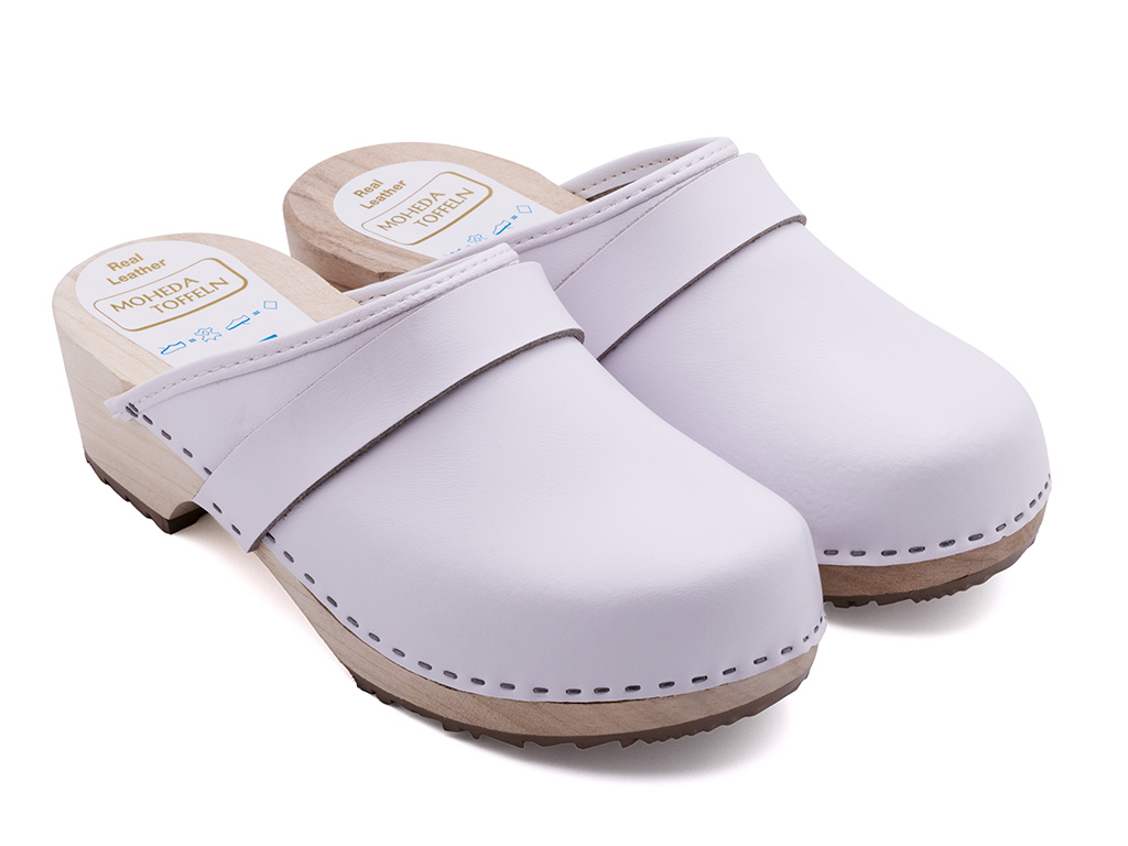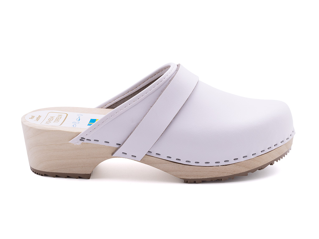 Lina ist der perfekte Holzclog für alle, die Eleganz und Funktionalität vereinen möchten. Das klassische Smé-Modell aus weißem, echtem Leder wird durch eine schützende Beschichtung ergänzt, die für zusätzliche Strapazierfähigkeit und Langlebigkeit sorgt. Die naturbelassene, unbehandelte Holzsohle verleiht ein authentisches Tragegefühl und bildet einen stilvollen Kontrast zum eleganten Obermaterial.